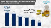 According to analysts, the global market for mining flotation chemicals is estimated to touch a value of over US$ 3,500 Mn by end of the assessment period (2026) from a value of around US$ 2,200 Mn in 2017. The global market is projected to expand at a CAGR of 5.7% during the forecast period (2018-2026).